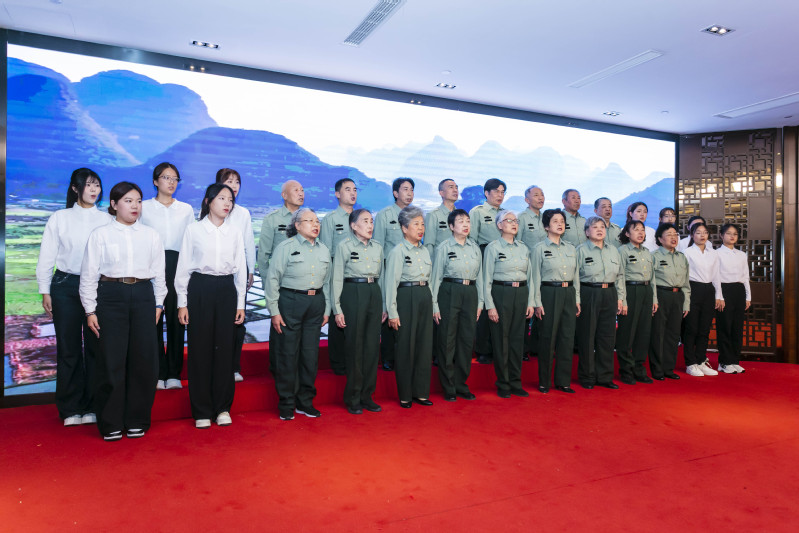 斗球体育 新生代表与军休干部、商斗球 学生深情合唱《我的祖国》