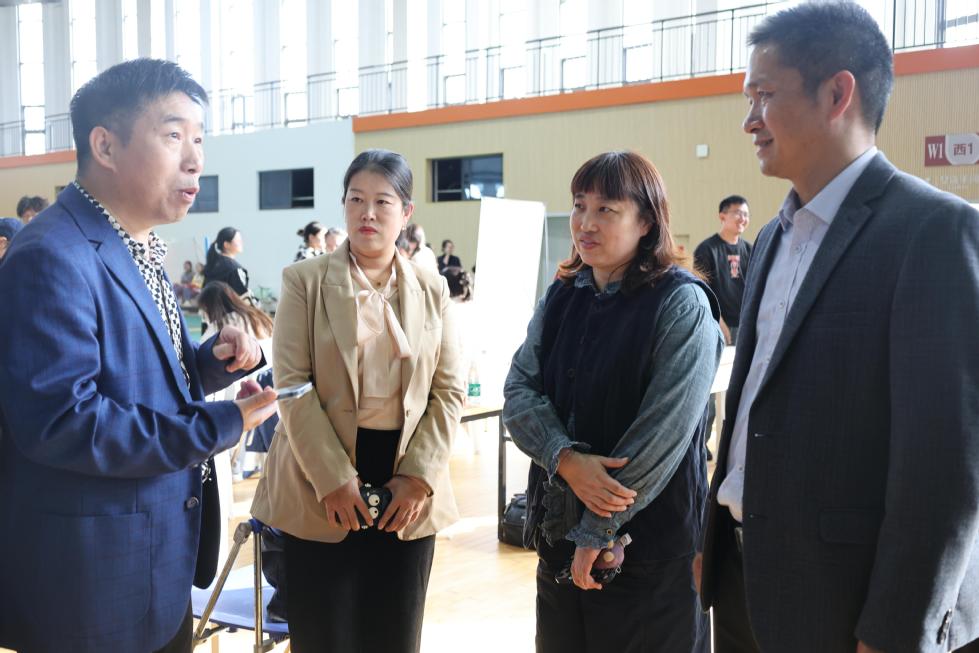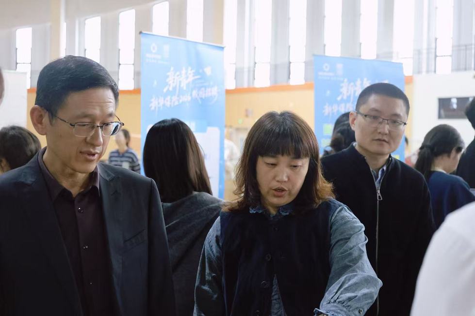 院党委书记姜鸿、党委副书记许丹丹逐一走访各用人单位展位,与用人单位HR进行深入交流,了解行业现状与用人需求,并积极向相关单位推荐斗球 毕业生。他们还与在各招聘展台前投递简历的毕业生们现场沟通,了解同学们的求职意向与进程,鼓励同学们主动尝试、把握机会。