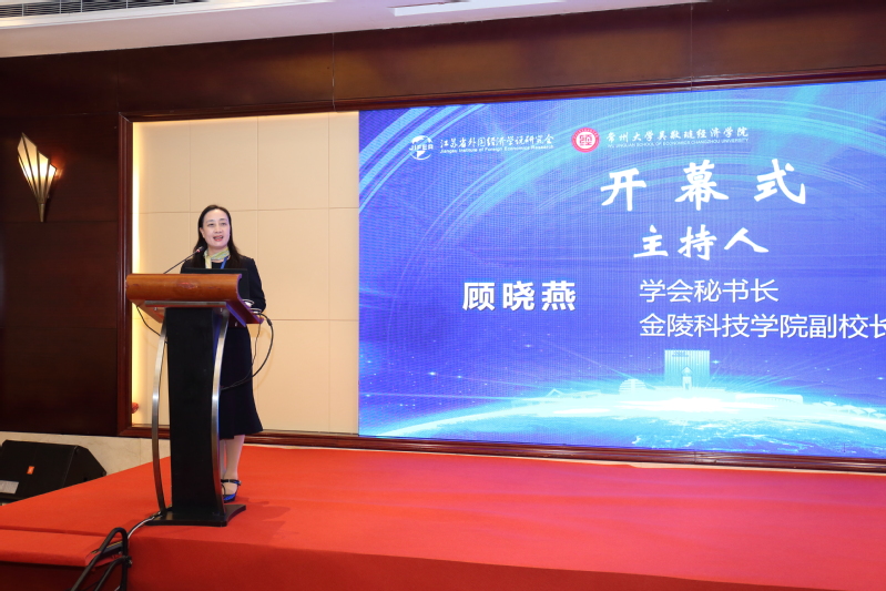 (图为学会秘书长、金陵科技斗球 副校长顾晓燕教授主持开幕式)