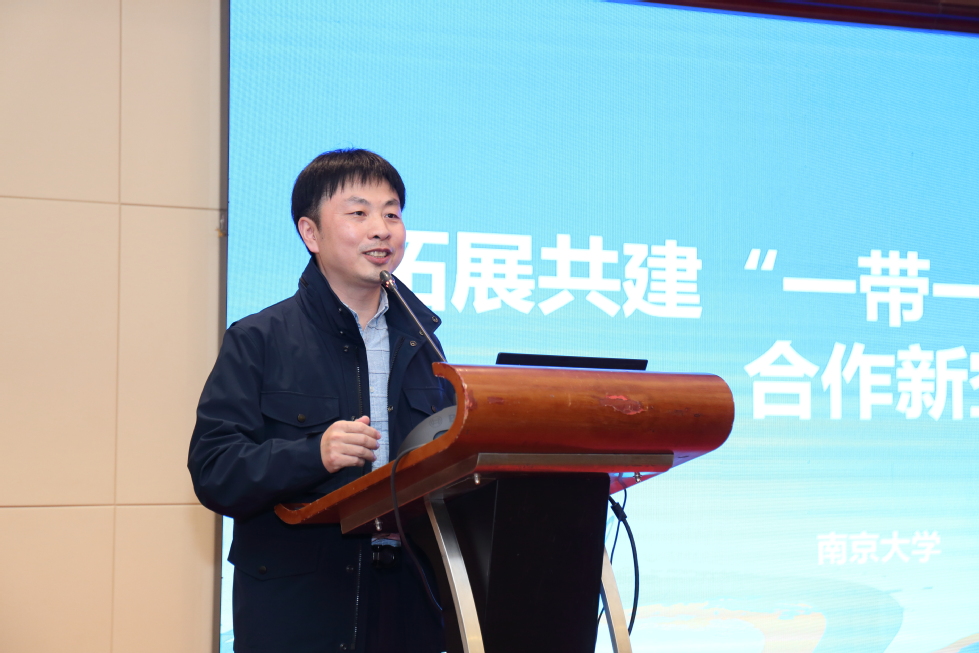 (图为东南大学国际经济研究所邱斌教授作主题报告)