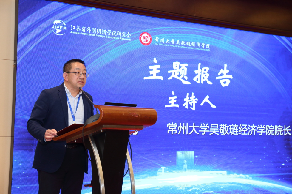 (图为江苏大学财经斗球 院长胡绪华教授主持主旨演讲环节)