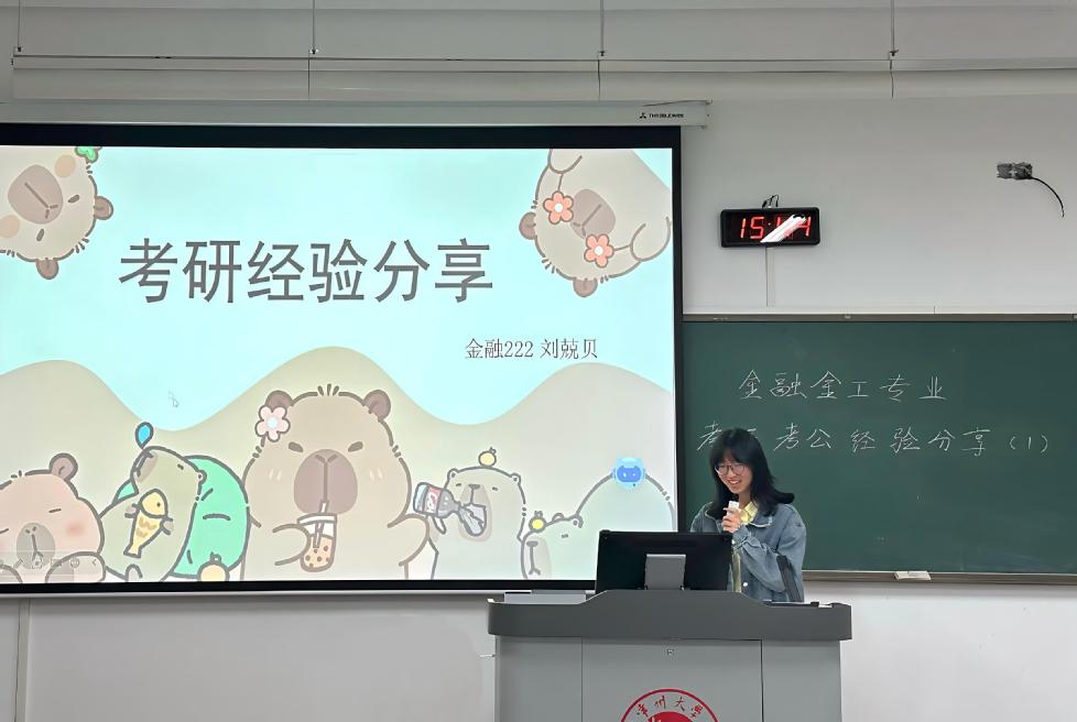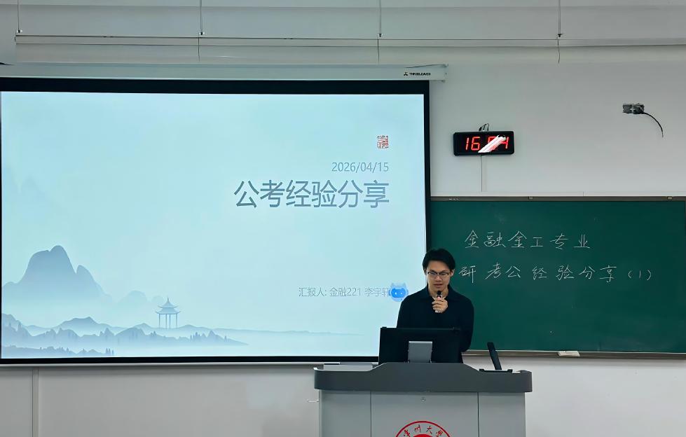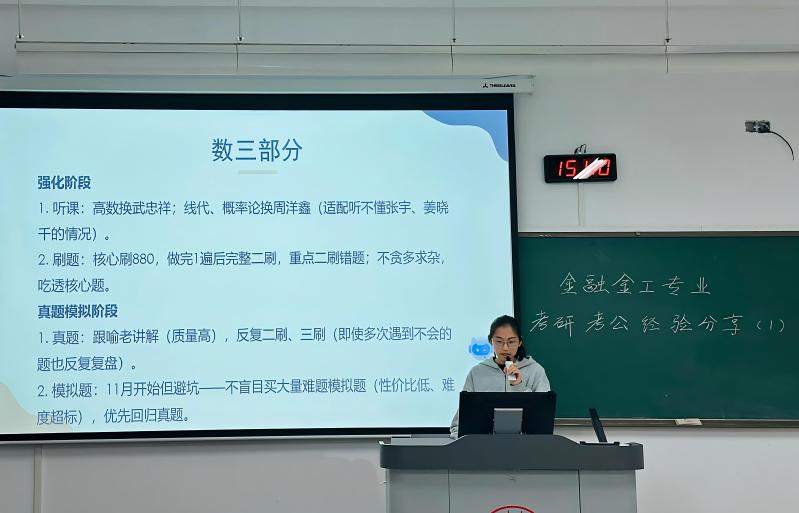 为帮助2023级学子明晰备考方向、科学规划发展路径,4月15日下午,斗球体育 于西太湖校区立德楼117教室开展了金融系考研考公经验分享会。本次分享会特邀姜旭老师以及三位“成功上岸”的2026届优秀学子作为主讲人,聚焦备考过程中的核心困惑与实战策略,为同学们带来了一场干货满满的经验盛宴。