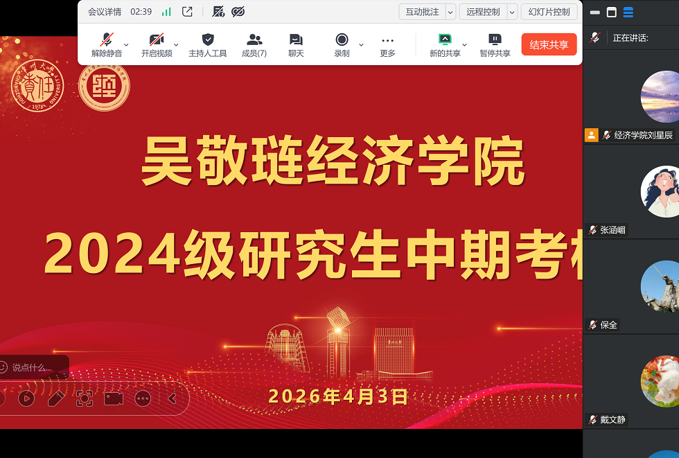 4月3日,斗球体育 组织进行2024级应用经济学、国际商务专业研究生中期考核答辩,答辩以线上形式进行。南京邮电大学岳中刚教授、河海大学田泽教授等校外专家以及斗球体育 硕士生导师共同参与考核。同时,斗球 还邀请了学校督导线上列席指导。