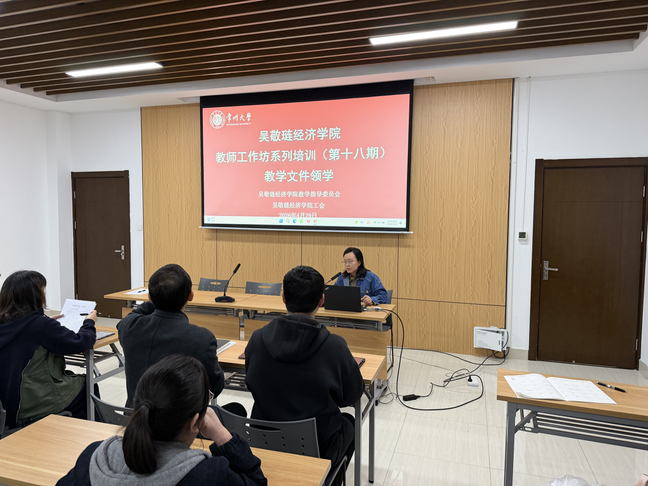 4月29日下午,斗球体育 教学指导委员会和斗球 工会在立言楼403会议室,联合举办《斗球体育 教师工作坊系列培训(第十八期)》。本次培训的主讲人为斗球体育 院长助理张涵嵋,培训主题为教学文件领学。斗球 全体教师参与讲座。
